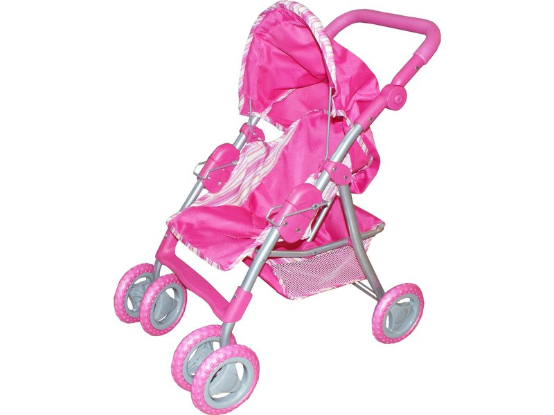 A legkényelmesebb luxus babakocsi, amit játékbabádnak elképzelhetsz! A babakocsi tolókarja állítható magasságú, a babakocsi első kerekei elfordulnak, hogy könnyebben kanyarodhass vele. A Lábtartós és kosaras babakocsi - rózsaszín ülésébe egy biztonsági övvel tudod rögzíteni a játékbabát, a babakocsi hátulján lévő nagy kosárba cumit, kiegészítőt, tartalék pelenkát is be tudsz tenni. Méretek: 49 x 38 x 64 cm.