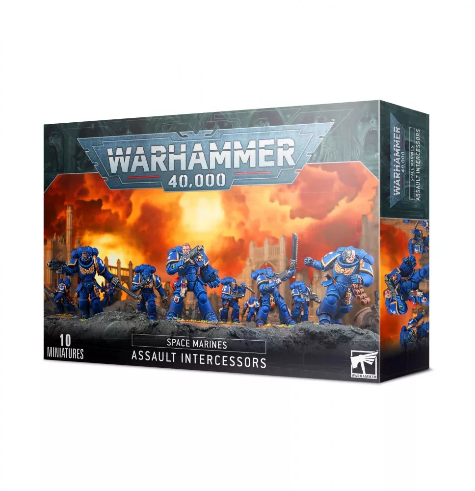 Ez a doboz 10 db több részből álló műanyag Space Marine Assault Intercessor figurákat tartalmaz Warhammer 40,000 wargame játékhoz, amit szabadon felhasználhatsz bármelyik Space Marine sergedhez. A csomag csak Ultramarines transfer sheet-et tartalmaz, így ha szeretnél autentikusan megfesteni egy másik rendházat, úgy szükséged lehet egy az adott Space Marine rendház upgrade szettjére.