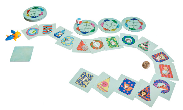 A Balatonon rengeteg kisállat fürdőzik, akik között meg kell keresni a megfelelő színű és alakú vízi játékokat. A dobozban több játékváltozat található: kisebbeknek szín- és formafelismerést fejlesztő, nagyobbaknak gyorsasági keresgélős.