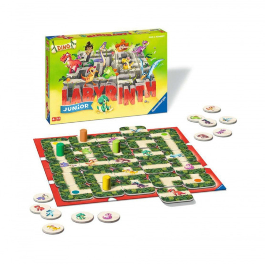 A labirintus nagyon szövevényes tudnak lenni, nem csoda, ha a Dínók elvesztek benne. Fedezzétek fel a Ravensburger Junior Dino Labirintusát, keressétek meg és szabadítsátok ki az őslényeket.Igazán dinamikus család társasjáték, melynek játékmenete egyszerű és izgalmas. A játékosok folyosói kártyák segítségével alakíthatják a labirintust, új utakat hozva létre és elzárva a régieket. A cél, hogy ügyesen navigálva megtaláld a kártyáidon szereplő Dínókat, mielőtt a többi játékos megelőz. Légy résen, mert megeshet, hogy egy-egy játékostársad keresztülhúzza a számításaidat, így egy új ötletre lesz szüksége.A doboz tartalma:1 db tábla4 db bábu17 db labirintus csempe12 db dinoszaurusz jelző1 db játékszabályKorosztály: 4 éves kortól ajánlottJátékidő: kb 30-45 perc